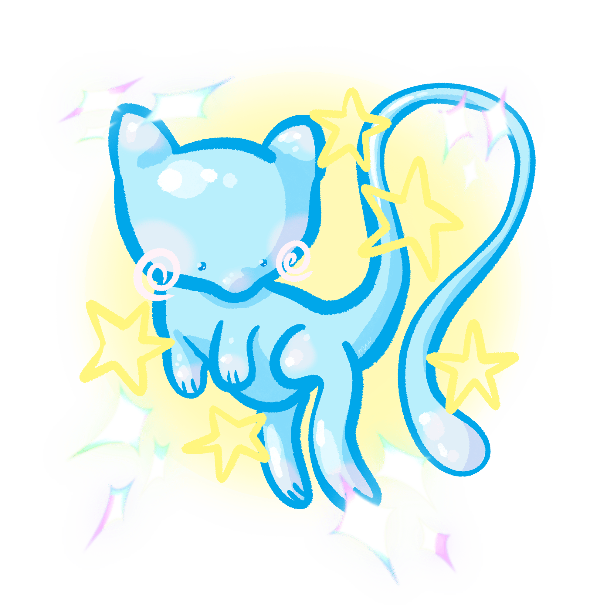 Transparent shiny Mew, about 3in across